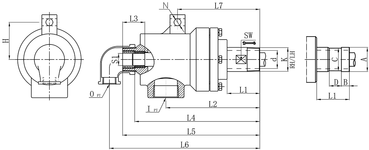 Model K I O S1 d L1 L2 L3 L4 L5 L6 L7 L9 N H SW 法蘭式外管尺寸對(duì)照表