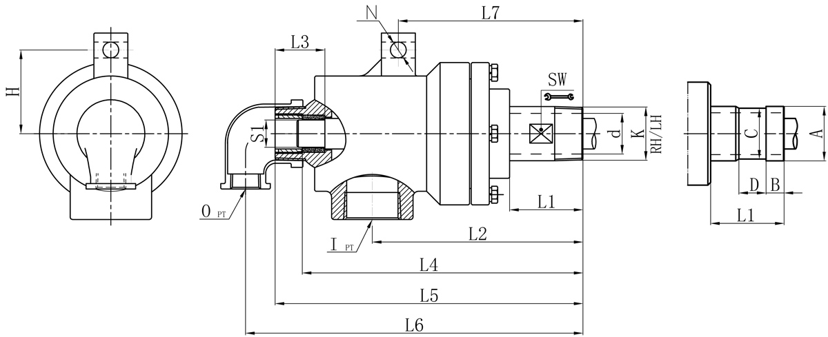| Model | K | I | O | S1 | d | L1 | L2 | L3 | L4 | L5 | L6 | L7 | L9 | N | H | SW | 法蘭式外管尺寸對照表 | |||