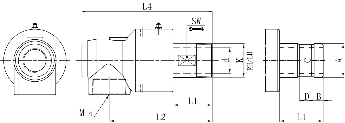 | Model | K | I | d | L1 | L2 | L4 | SW | 法蘭式外管尺寸對照表 | |||