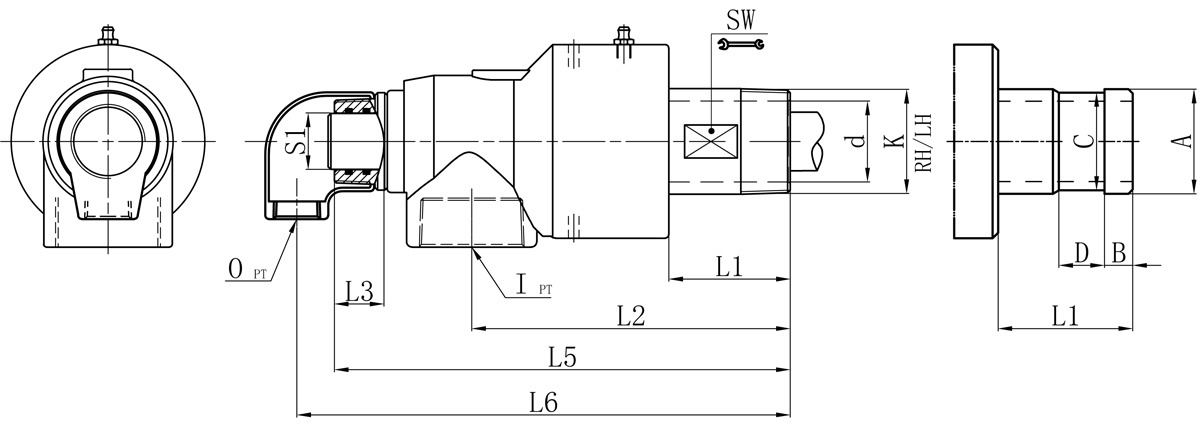 Model K I O S S1 d L1 L2 L3 L5 L6 SW 法蘭式外管尺寸對(duì)照表