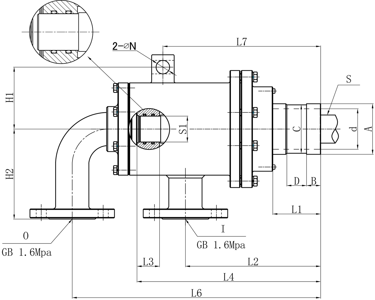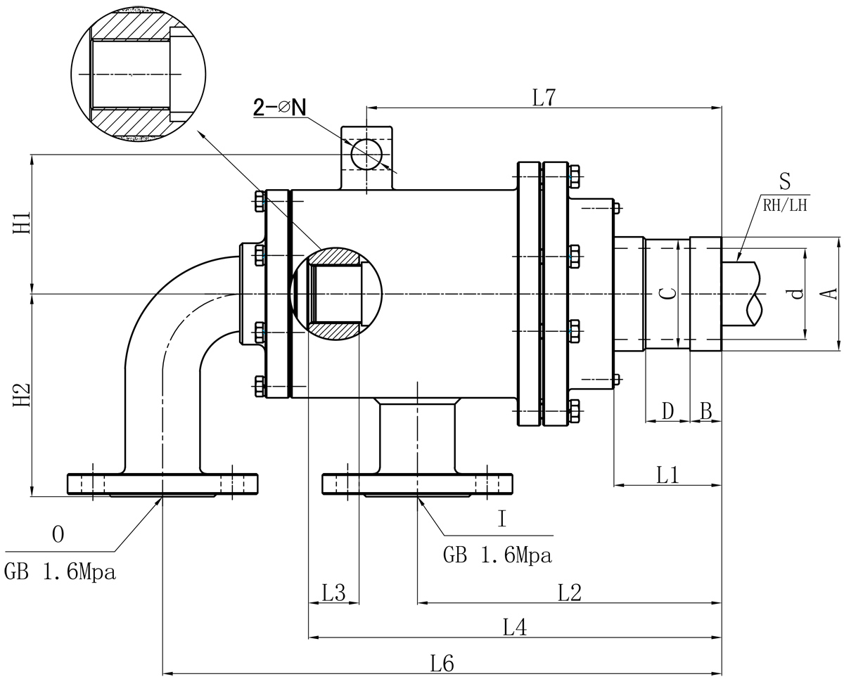 | Model | I | O | S1 | d | L1 | L2 | L3 | L4 | L6 | L7 | N | H1 | H2 | 法蘭式外管尺寸對(duì)照表 | |||