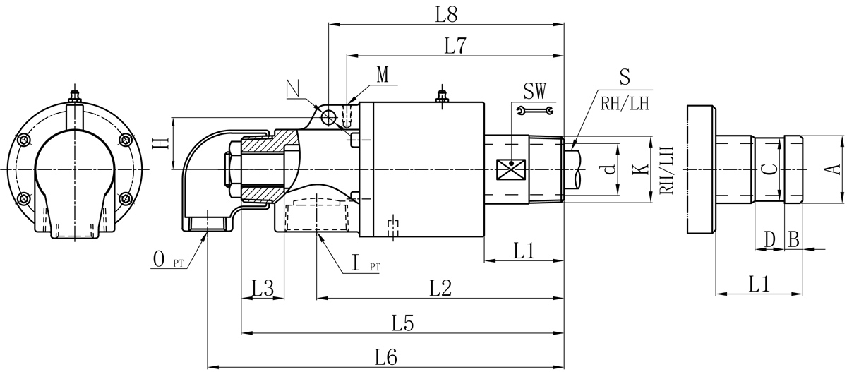 | Model | K | I | O | S | d | L1 | L2 | L3 | L5 | L6 | L7 | L8 | M | N | H | SW | 法蘭式外管尺寸對照表 | |||